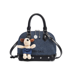 Bolsa Tote de Denim Azul Resistente ao Desgaste com um Charmoso Pingente em Forma de Cão, Apresentando uma Alça de Ombro Ajustável 1449