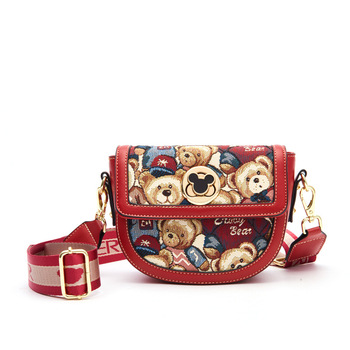 Fresco e doce urso padrão sela saco, elegante aba ombro crossbody saco, bom preço senhoras saco S-8208